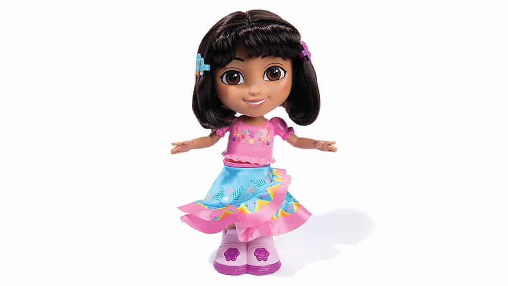 Kids can push the flowers on Dora’s shoes and watch as she dances and plays various bilingual songs from the show. The 12-inch doll comes with a collector’s card, two interchangeable skirts, and two barrettes to wear and share.