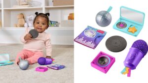 With the Mini Me Moments collection, babies can parrot their parents’ favorite hobbies, from sports and self-care to dinking and DJ-ing. Each set features kid-friendly versions of real objects to help little copycats learn new skills, build their confidence, and make the everyday extraordinary. The initial line includes six playsets — four of which are available now, and two are arriving later this fall.