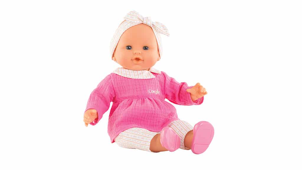 This 14-inch baby doll has a soft body, vinyl limbs, and a vanilla-scented head. Its eyes close for realistic, pretend play.