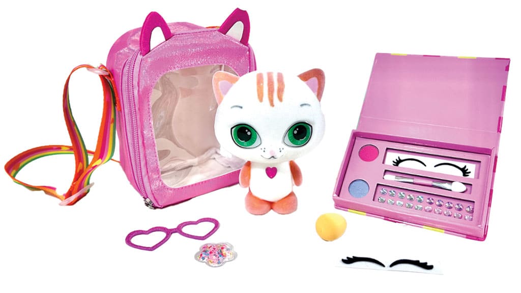 Kids can style flocked pets using washable cosmetics, press-on lashes, and accessories. Pets rinse clean for repeat play.