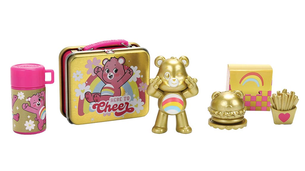Each 2-inch Care Bears-themed lunchbox tin comes with a matching Thermos, food accessory item, and a minifigure. Collectors can even look for the limited edition Gold Cheer Bear Chase figure.