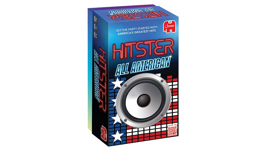 Players use a free app to scan music cards and guess the year, artist, and song title of classic American hits in this interactive digital party game. The first to correctly identify 10 songs wins.
