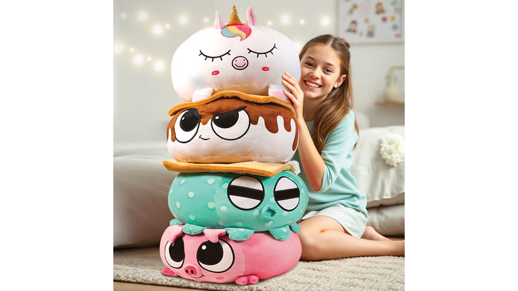 These squishy, puck-like plush are ideal for building pillow towers, while a variety of characters encourages collecting and playful display.