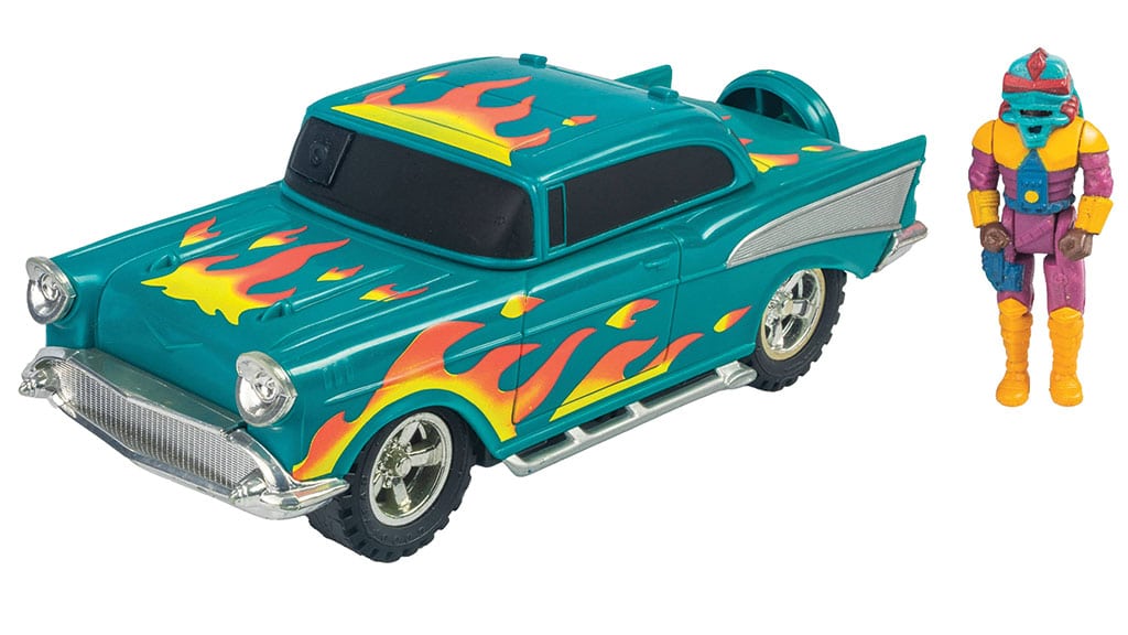 This flame-decorated muscle car features modern detailing and articulation. It converts into an All-Terrain Command Post with a hydraulic lift, rotating turret, and deployable blasters.