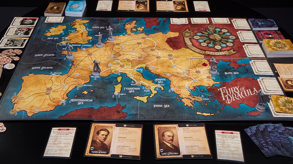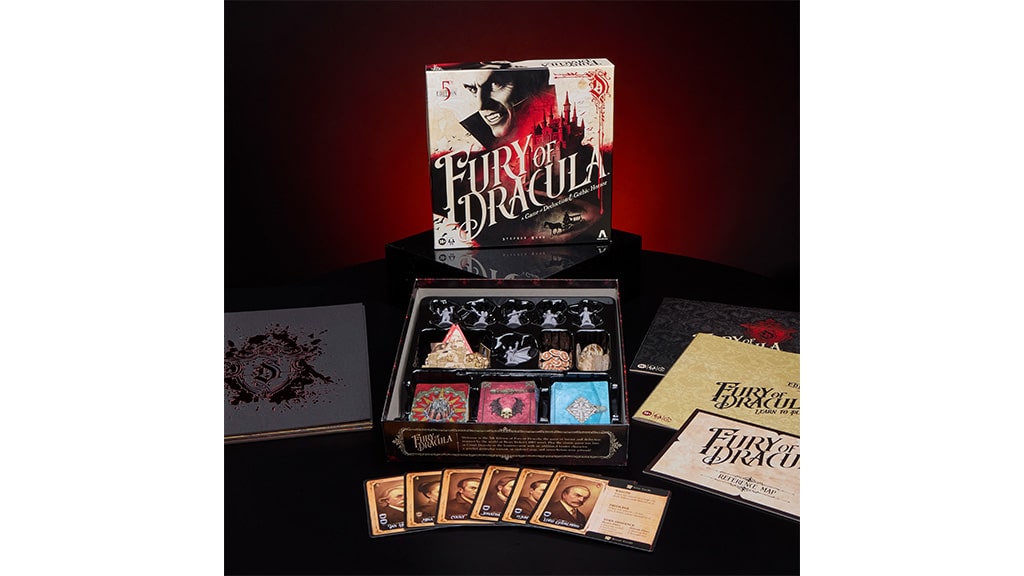 Avalon Hill brings more vampire-themed games with the fifth edition of Fury of Dracula. Launching Sept. 1, this updated version delivers classic deduction and Gothic horror for players ages 14 and up. In this hidden movement game, players take on the role of a hunter or Dracula. Hunters must find and stop the Count before it’s too late, while Dracula’s goal is to advance the influence track to space 13.