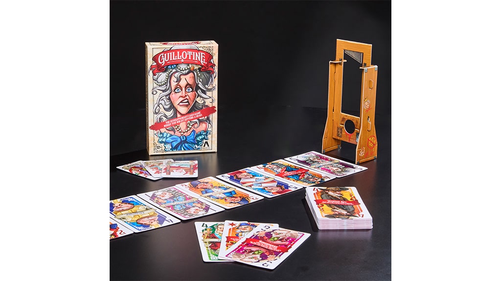 Revolutionary battles await in Guillotine, a card game where players win by getting a head. Players strategically use action cards to manipulate the lineup of nobles, securing their opportunity to grab the card with the most points. The player with the most valuable collection of noble heads wins the game Guillotine, which releases Aug 1.Â