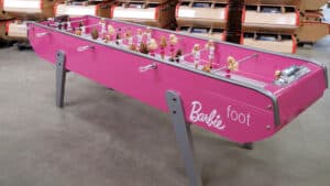 Barbie Foot blends Mattel’s beloved brand with tabletopĀ gamingĀ to make a statement about who gets to play sports. This customized football table swaps soccer figurines with Barbies and features the doll brand’s signature color and details. Created by French visual artist ChloĆ© Ruchon, Barbie Foot is manufactured by Bonzini and produced with the authorization of Mattel.
