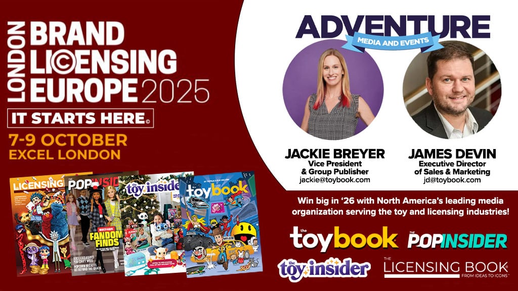 If you’re attending BLE, be sure to connect with our own Jackie Breyer and James “JD” Devin at the event. They’re on the ground in London representing Adventure Media & Events, the team behind The Toy Book, The Pop Insider, The Toy Insider, The Licensing Book, Sweet Suite, Holiday of Play, The Toy Book’s Pulse of Play Awards, and The Pop Insider’s Collectors’ Choice Awards.
