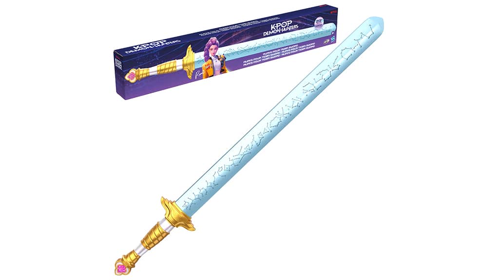The NERF KPop Demon Hunters Rumi's Four Tiger Sword captures the look of the sword used by Rumi, lead singer of HUNTR/X in the Netflix film KPop Demon Hunters. The 24-inch sword has a foam blade with pearlescent treatment, a plastic core, and a plastic hilt. Kids and collectors can use it for roleplay, cosplay, and imaginative demon-hunting adventures. Build out…