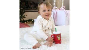 Toddlers can enjoy festive drinks out of a tumbler inspired by Dr. Seuss’ The Grinch. This container is designed for small hands and contains a leak-resistant straw.Â