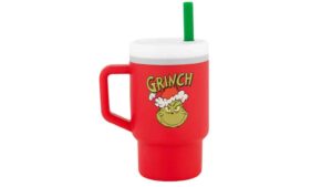 Toddlers can enjoy festive drinks out of a tumbler inspired by Dr. Seuss’ The Grinch. This container is designed for small hands and contains a leak-resistant straw.Â