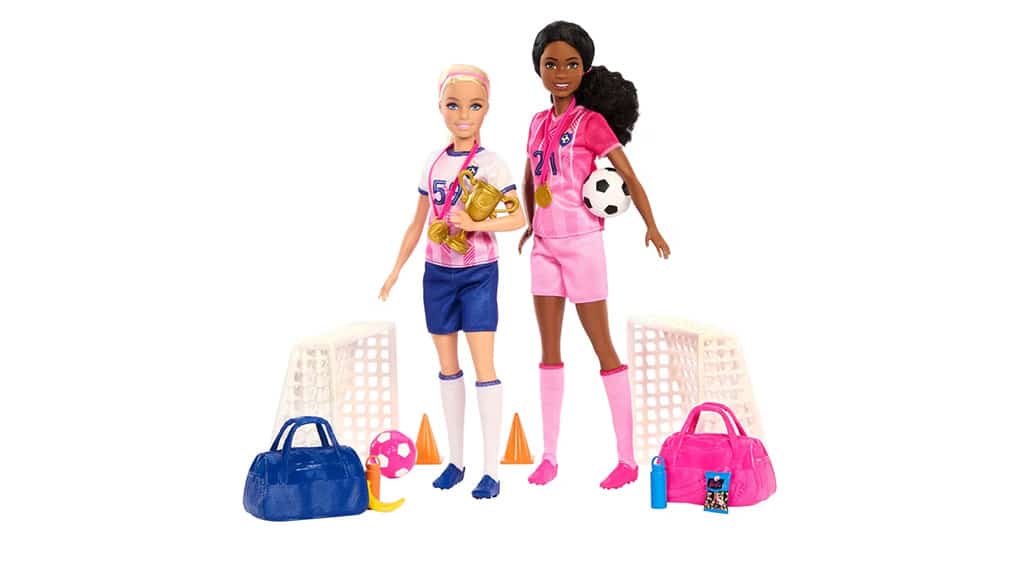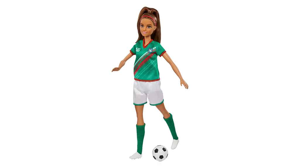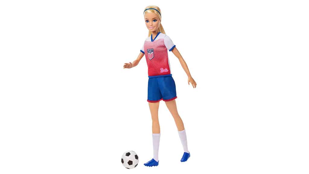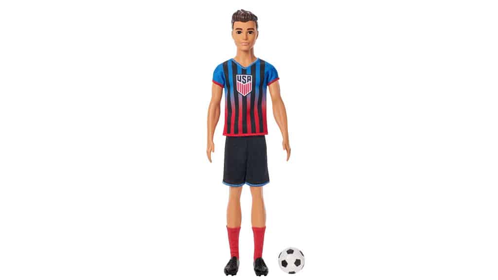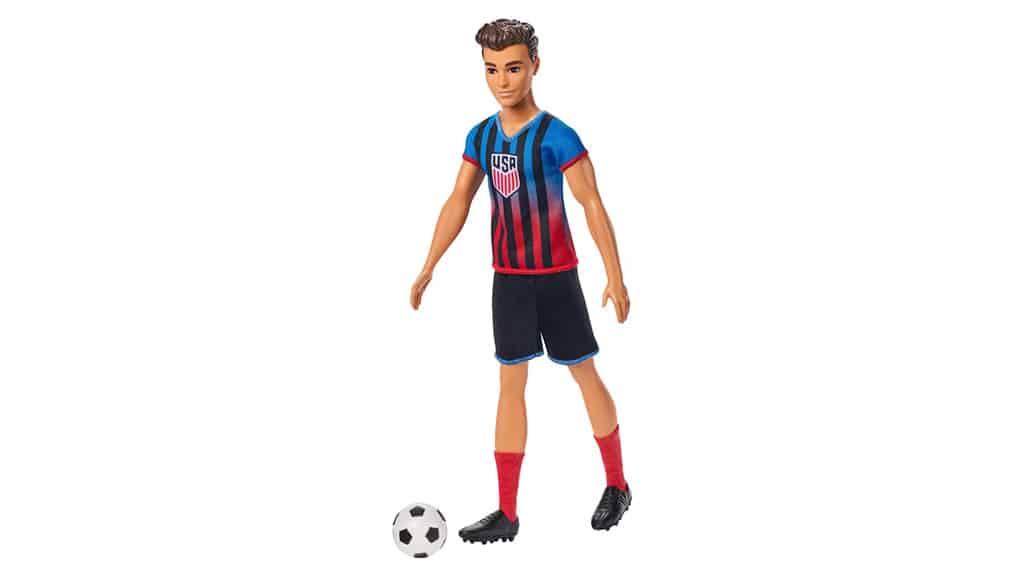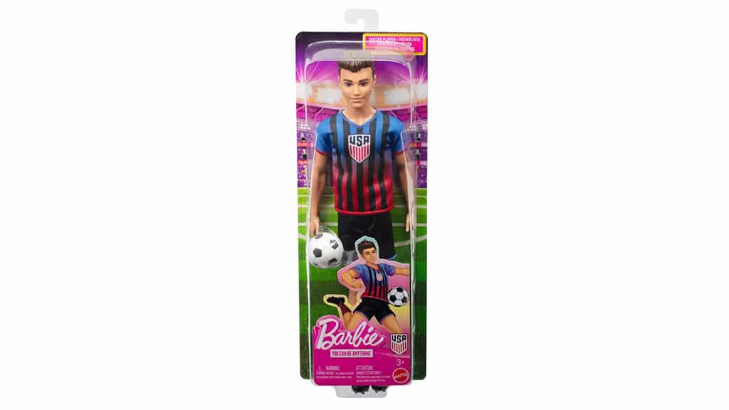 Barbie and Ken are also joining the celebration. The Barbie Careers USSF Soccer Fashion Dolls style Ken and Barbie in U.S. Soccer jerseys and coordinating shorts. The duo is accessorized with a soccer ball and cleats.