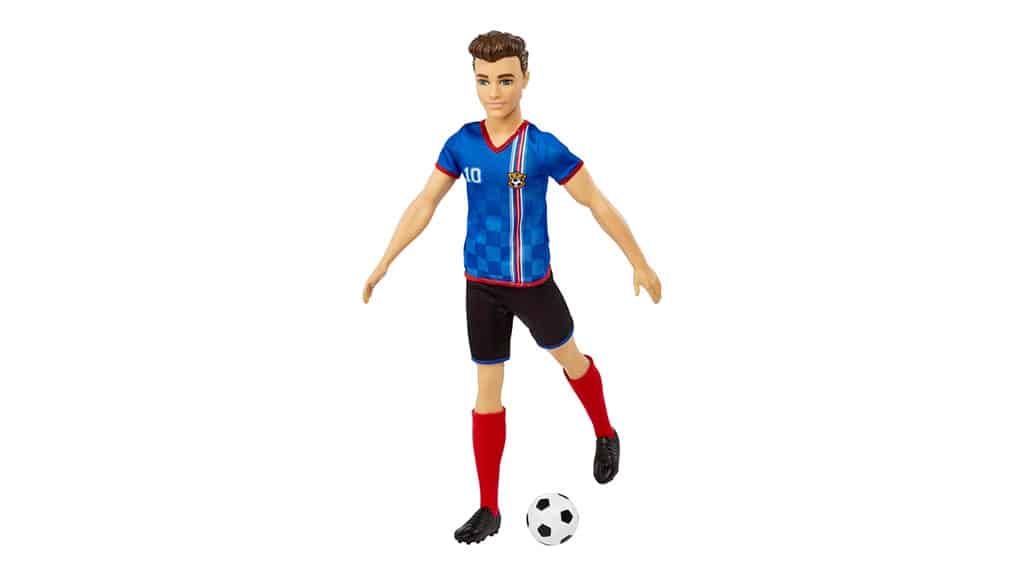 These Ken and Barbie dolls are dressed in uniforms inspired by popular global teams. Sold separately, both come with a soccer ball accessory.