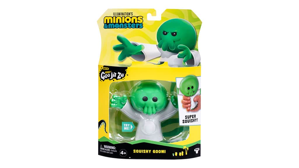 Characters from Minions & Monsters are reimagined as gooey Goo Jit Zu figures. The James Goo Jit Zu has a glucose filling, while the Goomi figure features a rheoscopic swirl filling. Both sensory toys can expand up to three times their size and snap back to their original shape.