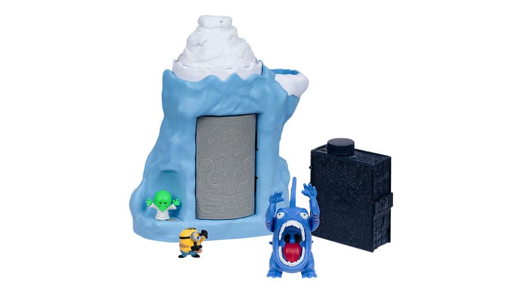 VFX magic meets the playroom with this new playset inspired by Minions & Monsters. A monster inside a frozen mountain is revealed with the special combination of a spell book, water, a magic potion, and a secret button.
