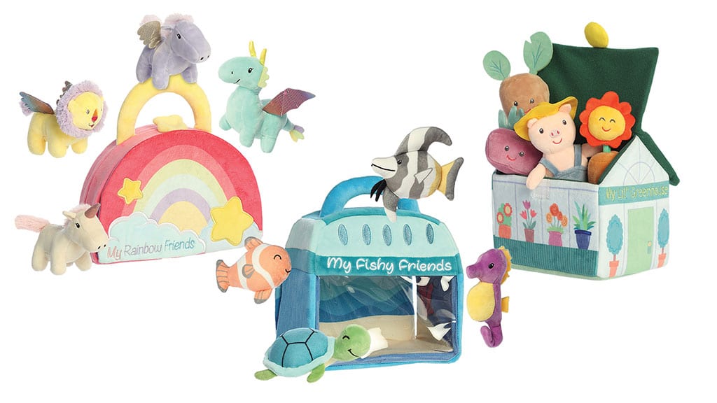 These cuddly plushies offer auditory engagement for little ones, as they chirp, roar, and chatter. Collections include My Fishy Friends, My First Greenhouse, and more.