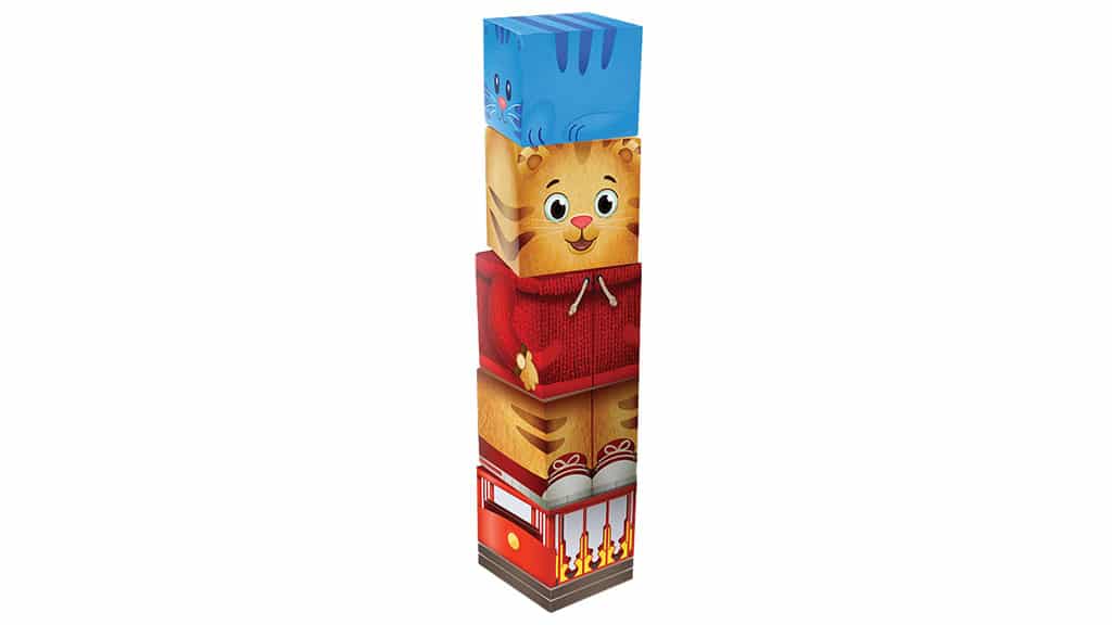 Builders can stack five magnetic cubes to form images of Daniel Tiger and additional characters from the animated series.
