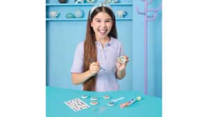 Tweens can create five adjustable, food-inspired bracelets using the rubber cords, alphabet beads, and colorful heishi beads included in this DIY kit.