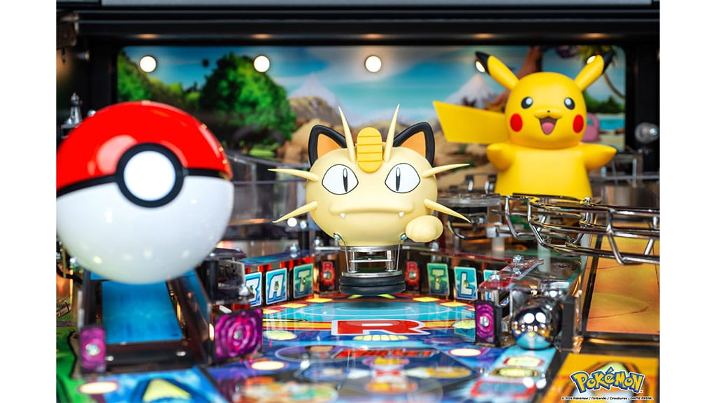 In this cabinet, trainers go on a journey across four habitats, discovering and catching fan-favorite Pokémon. The cabinet also features a mechanically animated Poké Ball to catch Pokémon. Other interactive elements in the cabinet include a Meowth Balloon that swipes into the battle arena, and an interactive electromagnet in the Premium and Limited-Edition games. The cabinet is rounded off with clips from the original animated Pokémon series, along with the show’s iconic theme song. Each variant of the cabinet uses Stern Pinball’s Insider Connected, which connects Trainers across machines and locations.