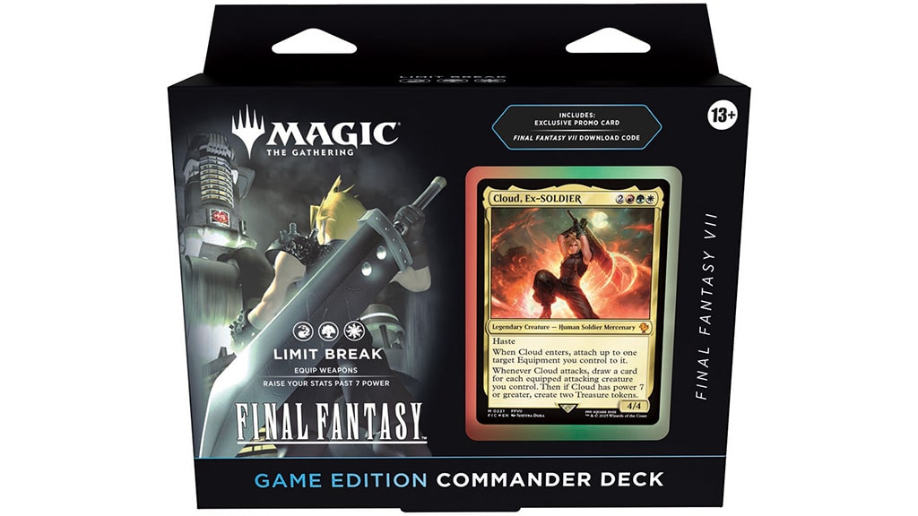 The first line to be shared, on store shelves before the end of this year, is the Magic: The Gathering — Final Fantasy collection. Featuring characters and elements from the series, new cards will be added to the expansion, as well as new Final Fantasy Scene Boxes and the Limit Break Commander Deck. The Scene Boxes have six new-to-Magic: The Gathering cards that recreate a scene based on one of the games, while the Limit Break Commander Decks come with a new promo card and a download code for Final Fantasy VII.